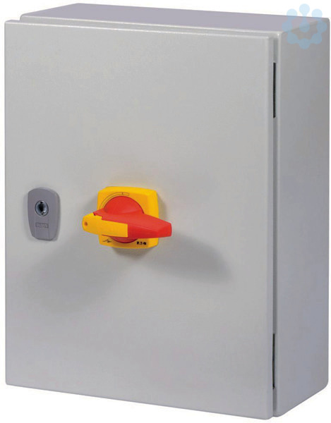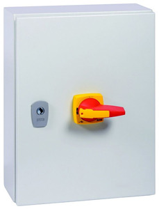 DMM-125/4/SE4/P-R_Lasttrennschalter, DMM, 125 A, 4-polig, NOT-AUS-Funktion, mit rotem Drehgriff und gelbem Sperrkranz, im Stahlgehäuse