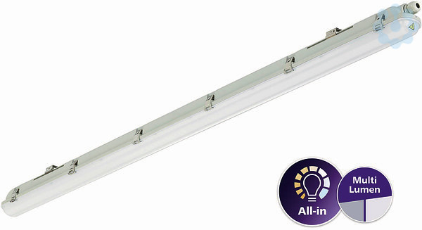 L1500 mm, Polykarbonat, Grau, Netzteil (Ein/Aus), 4100 lm, 6800 lm, 53 W, 30 W, 128 lm/W, 4000 K, (0.38,0.38)SDCM=6, Symmetrisch, Opal, Polykarbonat, Schutz gegen Eindringen von Staub, strahlwassergeschützt, 5 J vandalismusgeschützt, SchutzklasseI, Schnellsteckverbinder, 3-polig, Einfacher Anschluss und abnehmbare Abdeckung für 1-phasige Durchgangsverdrahtung verfügbar (interne Verdrahtung ist nicht enthalten)