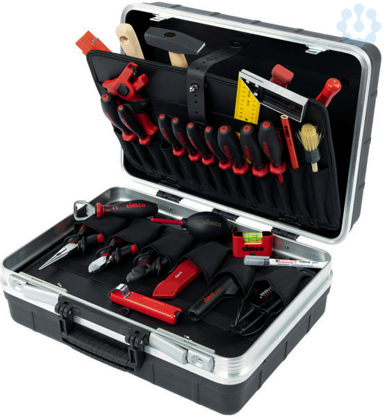 Robuster Werkzeugkoffer aus stoßfestem Polypropylen mit stabilem Aluminiumrahmen und zwei abschließbaren Kippschlössern inkl. 2 Schlüsseln. Der gummierte Griff bietet einen festen Halt. Ausgestattet mit herausnehmbarer Bodenabdeckplatte, die einseitig mit Werkzeugtaschen bestückt ist. Zudem herausnehmbare Werkzeugtafel mit einer Vielzahl von Werkzeugeinsteckfächern. Größe: L x B x H 395 x 455 x 205 mm. Gewicht: leer 3.450 g, bestückt 6.300 g. Inklusive 29 Qualitätswerkzeuge und gratis CIMCO-Flaschenöffner. Werkzeugkoffer-Bestückung: 1 x 1.000 V Telefonzange gerade, 200 mm (10 0216), 1 x 1.000 V Seitenschneider, 160 mm (10 0574), 1 x Kabelschere DUOCUT, 160 mm (12 0108), 1 x JOKARI Abisolierzange SUPER 4 PLUS (10 0780), 1 x JOKARI Kabelmesser ohne Klinge (12 1014), 1 x Spannungsprüfer, 2-polig (11 1442), 1 x JOKARI Innendosen-Stabentmanteler, 8 - 13 mm ø (12 2027), 1 x Gipsmulde aus Weichgummi, 120 mm ø (14 0306), 1 x Taschensäge PUK, Spannweite 150 mm (12 0502), 1 x 1.000 VSicherheits-Kabelmesser (12 1042), 1 x Schlosserhammer, nach DIN 1041/1193, 300 g (13 0804), 1 x Malerspachtel, 40 mm (14 0310), 1 x Wasserpinsel, ø 24 mm (14 0310), 1 x Gliedermaßstab aus Holz, 2 m (21 0004), 1 x Zimmermannsbleistift, HB Mine, 240 mm (21 2170), 1 x VDE-Schlitz-Schraubendreher 3,0 x 0,5 x 100 mm (11 7702), 1 x VDE-Schlitz-Schraubendreher 4,0 x 0,8 x 100 mm (11 7704), 1 x VDE-Schlitz-Schraubendreher 5,5 x 1,0 x 125 mm (11 7705), 1 x VDE-Kreuzschlitz-Schraubendreher PH 1 x 80 mm (11 7731), 1 x VDE-Kreuzschlitz-Schraubendreher PH 2 x 100 mm (11 7732), 1 x VDE-Kreuzschlitz-Schraubendreher PZ 1 x 80 mm (11 7741), 1 x VDE-Kreuzschlitz-Schraubendreher PZ 2 x 100 mm (11 7742), 1 x Schaltschrank-Wasserwaage, 230 mm (21 1540), 1 x Steckdosen-Wasserwaage (21 1555), 1 x Automatik-Messer (12 0077), 1 x Winkel 90°, Skala bis 20 cm (21 1060), 1 x Bohrloch-Ausbläser (20 4810), 1 x CIMCO-Baumarker von Edding (21 2188), 1 x VDE-SLIM-Schraubendreher mit Kombi-Profil PZ FL 1 (11 7780), 1 x VDE-SLIM-Schraubendreher mit Kombi-Profil PZ FL 2 (11 7782)