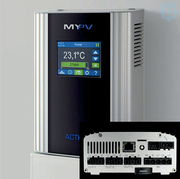 Photovoltaik-Power-Manager 9kW (AC3) für Warmwasser und Heizung und regelt stufenlos elektrische Wärmequellen in Abhängigkeit von PV-Energieangebot und Wärmebedarf. Er kommuniziert über Netzwerk mit Wechselrichter, Batteriesysteme und Smart-Home Steuerungen und erhält die Information, wieviel photovoltaische Energie zur Verfügung steht. Fehlende Energie wird aus dem öffentlichen Stromnetz bezogen, der Start des Heizsystems ist nicht länger erforderlich.