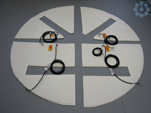 Flexible Spezialheizmatte mit integrierter Waermedaemmung und PTFE-isolierten Heizelementen fuer die Offset-Parabolantenne CAS 180