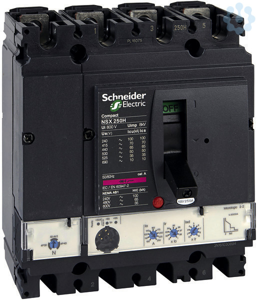 Bei diesem ComPact NSX160H handelt es sich um einen kompletten 4P 4d-Leistungsschalter in Festeinbau, der zur Optimierung des Platzbedarfs und des Ausschaltvermögens entwickelt wurde. Es ist eine optimale Wahl für alle Standard- und Sonderanwendungen. Das Ausschaltvermögen (Icu) beträgt 70 kA eff. bei 415 VAC, 50/60 Hz. Die Betriebsspannung beträgt 690 VAC 50/60 Hz. Dieses Produkt verfügt über ein elektronisches Auslösegerät MicroLogic 2.2 mit einer Nennleistung von 160 A. Das Auslösegerät MicroLogic 2.2 bietet anpassbare Langzeit- und Kurzzeitschutzfunktionen sowie einen festen unverzögerten Schutz. Diese 4-polige Ausführung (140 mm x 161 mm x 86 mm) wird mit einer Vielzahl optionaler Funktionen und Zubehörteile geliefert. Sie ist konform mit internationalen Normen (IEC 60947), CCC, EAC und Marinespezifikationen. ComPact NSX160H ist Teil der EcoStruxure Power-Architektur von Schneider Electric.