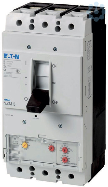 Leistungsschalter NZM3, 3-polig, Schaltvermögen 400/415 V 50 Hz( Icu ): 50 kA, Bemessungsstrom = Bemessungsdauerstrom Bemessungsstrom = Bemessungsdauerstrom( In = Iu ): 250 A, Einbautechnik: Festeinbau, Schraubanschluss, Norm/Zulassung: IEC, Schutzfunktion: Anlagen- und Kabelschutz