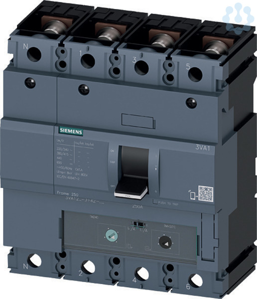 Leistungsschalter 3VA1 IEC Frame 250 Schaltvermögenklasse M Icu=55kA @ 415V 4-polig, Anlagenschutz TM240, ATAM, In=200A Überlastschutz Ir=140A...200A Kurzschlussschutz Ii=5...10 x In N-Leiterschutz 100% Schraubenflachanschluss Unterspannungsauslöser (UVR) 120-127V AC 50/60Hz 2 Hilfsschalter HQ 1 Ausgelöst-Meldeschalter HQ Kompaktleistungsschalter 3VA1 für Anlagenschutz. Die Kompaktleistungsschalter 3VA von Siemens als wichtiger Bestandteil der SENTRON Schutzkomponenten für industrielle Anwendungen sowie für Anwendungen im Infrastrukturbereich bieten effektiven Anlagen -, Starter- und Motorschutz durch sicheres Abschalten im Überlast- und Kurzschlussfall. Die Kompaktleistungsschalter 3VA setzen dabei Maßstäbe in Flexibilität und modularer Zubehörvielfalt. Einheitliches Zubehör für mehrere Baugrößen über alle Baureihen des Kompaktleistungsschalters 3VA1 und 3VA2. Diese Variante des Kompaktleistungsschalters 3VA zeichnet sich vor allem aus durch: 1. Kompakte Bauform. 2. Verfügbar als Variante für Anlagenschutz 3. Abhängig von der Baugröße: 1- bis 4-polige Ausführungen. 4. Abhängig von Baugröße: Schaltvermögen von 16 kA ... 70 kA bei 415 V für 3- bzw. 4-polige Schalter und 36 kA bei 240 V für 1-polige Schalter. 5. Montage in Festeinbau und Stecktechnik möglich. 6. Die Baureihe verfügt über einen Thermisch-magnetische Überstromauslöser. 7. Geeignet für AC und DC-Anwendung. 8. Modulares und einfach zu montierendes internes Zubehör mit vielfältigen Funktionen. 9. Durchgängige Zubehörplattform über alle Kompaktleistungsschalter 3VA. www.siemens.de/3VA. Siemens bietet für die sichere, effiziente elektrische Infrastruktur in Gebäuden und Industrie ein durchgängiges Portfolio an Schutz-, Schalt-, Mess- und Überwachungsgeräten, Verteilersysteme sowie Schaltern und Steckdosen.