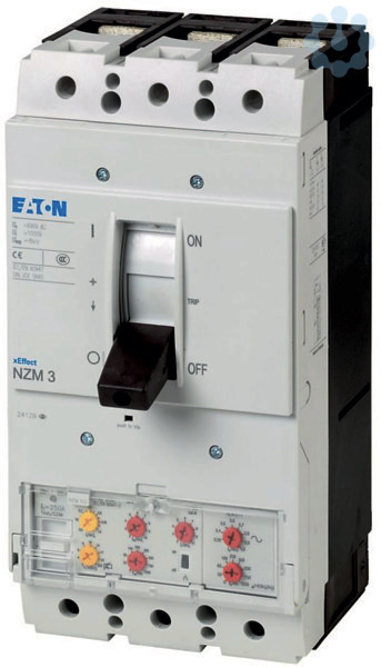 Leistungsschalter NZM3, 3-polig, Schaltvermögen 400/415 V 50 Hz( Icu ): 50 kA, Bemessungsstrom = Bemessungsdauerstrom Bemessungsstrom = Bemessungsdauerstrom( In = Iu ): 630 A, Einbautechnik: Festeinbau, Schraubanschluss, Norm/Zulassung: IEC, Schutzfunktion: Anlagen-, Kabel-, Selektiv- und Generatorschutz