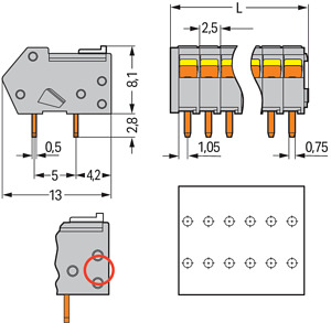 Leiterplattenklemme 0,5mm² Betätigungsschieber orange