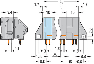 Leiterplattenklemme 16mm² R Rastermaß 15mm grau