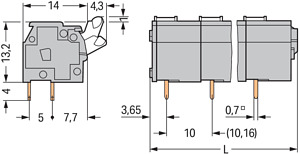 Leiterplattenklemme 2,5mm² Fingerdrücker grau