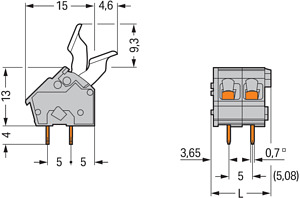 Leiterplattenklemme 2,5mm² Fingerdrücker grau