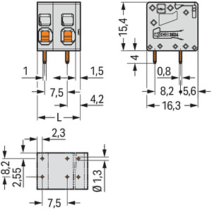 Leiterplattenklemme 4mm² Rastermaß 7,5mm grau