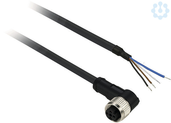 Dieses OsiSense Anschlusskabel hat ein PUR-Kabel (5 Meter Kabel). Er hat einen 4-poligen m8-Steckverbinder mit Krümmung.