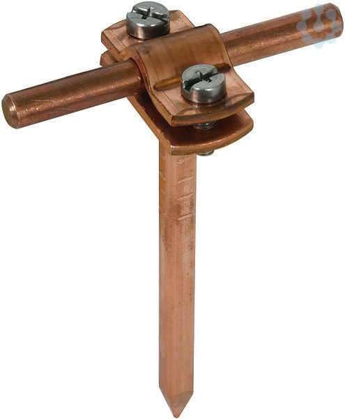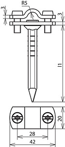 Leitungshalter mit Zweischrauben-Überleger und Spitze, für Rund- und Flachleiter. Ausführung mit Vierkantspitze.