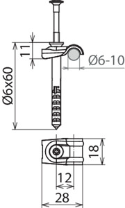 Leitungshalter DEHNQUICK zum Verlegen von Rundleitern z. B. Unterputz oder auf der Wand (hinter dem Wärmedämm-Verbundsystem). Ausführung mit Nageldübel 6 x 60 mm, vormontiert.