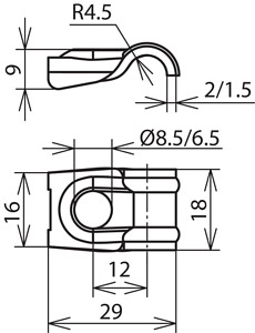 Leitungshalter DEHNQUICK zum Verlegen von Rundleitern z. B. Unterputz oder auf der Wand (hinter dem Wärmedämm-Verbundsystem). Ausführung mit Bohrung 8,5 mm.