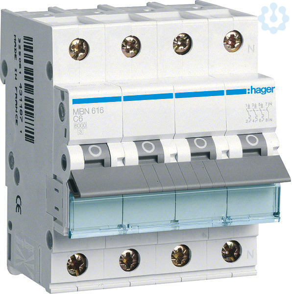 Leitungsschutzschalter 3P+N 6kA B-Charakteristik 16A 4 Module.Leitungsschutzschalter nach DIN EN 60898-1 (VDE 0641-11) mit zeitverzögertem thermischen Auslöser für Überlastschutz und elektromagnetischer Auslöser für Kurzschlussschutz. Geeignet zum nachträglichen Anbau von Zusatzeinrichtungen. Beschriftungsmöglichkeit direkt am Gerät und Einzelentnahme aus dem Phasenschienenverbund durch Entriegelung der Hutschienenschnellbefestigung.
