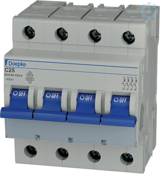 Die Aufgabe von Leitungsschutzschaltern ist das selbsttätige Abschalten von Stromkreisen zum Schutz von Leitungen und angeschlossenen Geräten. Nach einer Abschaltung können sie manuell wieder eingeschaltet werden, ohne dass z. B. Sicherungseinsätze ausgewechselt werden müssten. Jeder unserer Leitungsschutzschalter ist mit einer Freiauslösung ausgestattet, die ein sicheres Abschalten, auch bei z. B. mechanisch blockiertem Schaltknebel, gewährleistet. Leitungsschutzschalter der Baureihe DLS 6 schützen Kabel, Leitungen und Installationsgeräte gegen Überlast und Kurzschluss nach DIN VDE 0100. Die Baureihe umfasst eine große Auswahl verschiedener Typen, vom Schalter für Wohn- und Zweckgebäude bis zum Schalter für den industriellen Bereich. Durch ihre kompakte Bauweise bieten Leitungsschutzschalter der Baureihe DLS 6 maximalen Raumgewinn für die komfortable Verdrahtung. Der große Klemmbereich und die Möglichkeit der Verwendung handelsüblicher Verdrahtungsschienen sorgen für eine einfache Installation. Ergänzend ist der Anschluss einer Vielzahl von Zusatzgeräten wie zum Beispiel Arbeitsstromauslöser sowie Hilfs- und Störmelder möglich. Die Ausführung DLS 6h für das Handwerk eignet sich mit ihrem Bemessungsschaltvermögen von 6 kA für Verteiler- und Endstromkreise. Schalter mit der Auslösecharakteristik C sind für Leistungsstromkreise mit hohen Einschalt- bzw. Spitzenströmen optimiert. Eigenschaften: Bemessungsschaltvermögen 6 kA; Zugbügelklemmen mit weitem Klemmquerschnittsbereich für Schienen- und Leitungsverdrahtung auf beiden Anschlussseiten; spezielle Schnellbefestigung zur Entnahme auch mehrerer Leitungsschutzschalter aus dem unteren oder oberen Schienenverbund; großes. klappbares Beschriftungsfenster für einen sicheren Halt und Schutz des Etiketts; Verwendung von handelsüblichen Verdrahtungsschienen; ON/OFF-Schaltstellungsanzeige am Schaltknebel; Zubehör rechts nachrüstbar; kostenlose Beschriftungssoftware; Montageart: Schnellbefestigung auf Tragschiene; Einbaulage beliebig; Einsatzgebiete: geeignet für den Einsatz in Stromversorgungen für Wohngebäude und Zweck- bzw. gewerblich genutzte Gebäude.
