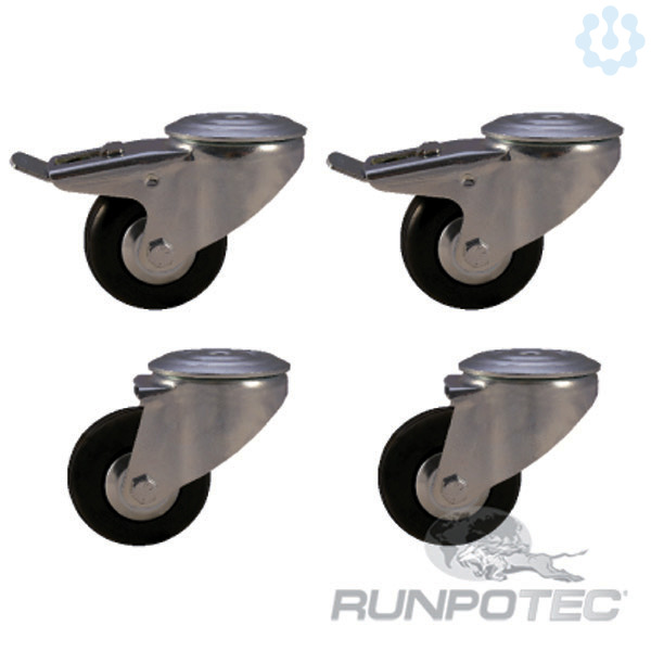 Die Lenkrollen im 4er-Set, davon 2 mit Feststellbremsen, können einfach an den RUNPOTEC Kabeltrommelabroller PRO 530 und PRO 670 angeschraubt werden. Dadurch kann der Kabeltrommelabroller einfach bewegt und ohne viel Aufwand in die gewünschte Position gebracht werden. Hochwertige Kugellager, beste Verarbeitung und belastbare Kunststoffräder garantieren eine hohe Tragfähigkeit und lange Lebensdauer.