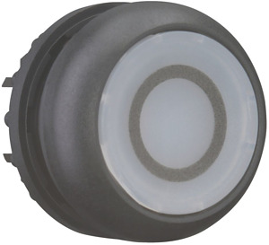 Leuchtdrucktaste, Sortiment: RMQ-Titan, Einzelgerät, Bauform: flach, rastend, Tastenplatte: weiß, Tastenplatte beschriftet, Schutzart: IP66, IP67, IP69K, Frontring Schwarz, Anbindung an SmartWire-DT: ja, mit RMQ-SWD-Anschaltungen, Frontabmessung: 29,7, Hinweise: Rast-/Tastfunktion am Gerät veränderbar, Normen und Bestimmungen: IEC/EN 60947, VDE 0660