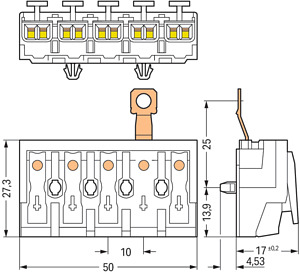 | Anschließbarer Leiterquerschnitt feindrähtig ohne Aderendhülse | 0.5...2.5 |