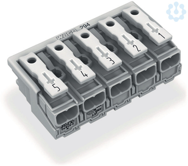 Leuchtenanschlussklemme; Drücker extern; ohne PE-Kontakt; 5-polig; Leuchtenseite: für eindrähtige Leiter; Inst.-Seite: für alle Leiterarten; max. 2,5 mm²; Umgebungstemperatur max. 85 °C (T85); 2,50 mm²; weiß