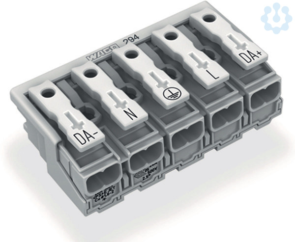 Leuchtenanschlussklemme; Drücker extern; ohne PE-Kontakt; 5-polig; Leuchtenseite: für eindrähtige Leiter; Inst.-Seite: für alle Leiterarten; max. 2,5 mm²; Umgebungstemperatur max. 85 °C (T85); 2,50 mm²; weiß