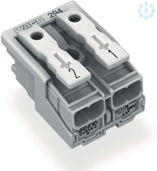 Leuchtenanschlussklemme; Drücker extern; ohne PE-Kontakt; 2-polig; Leuchtenseite: für eindrähtige Leiter; Inst.-Seite: für alle Leiterarten; max. 2,5 mm²; Umgebungstemperatur max. 85 °C (T85); 2,50 mm²; weiß