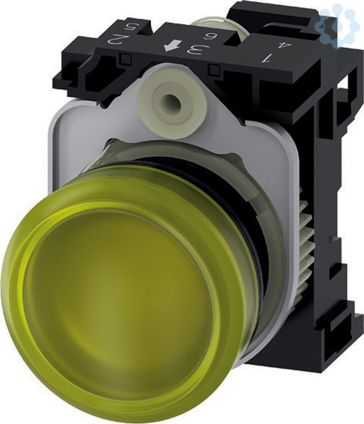 Leuchtmelder, 22 mm, rund, Kunststoff, gelb, Linse, glatt, mit Halter, LED-Modul, MIT INTEGRIERTER LED AC/DC 24V, Federzuganschluss Leuchtmelder SIRIUS ACT zur Signalisierung von Schaltzuständen oder Störungen in Anlagen mit brillianter Leuchtkraft dank energieeffizienter LED-Technologie.Unter dem Markennamen SIRIUS ACT bietet Siemens ein einzigartiges Portfolio an Befehls- und Meldegeräten mit weltweiten Produkt-Zulassungen in drei modernen Designreihen aus robustem Echtmetall und hochwertigem Kunststoff.Das innovative Aufschnappkonzept vereinfacht die Montage so weit, dass dafür nur eine Hand und kein Spezialwerkzeug erforderlichist. Als Montagebohrungen genügen nutfreie Löcher, da bereits ein 100%iger Verdrehschutz integriert ist.Dank der durchgängig hohen Schutzart sind die robusten Geräte industrietauglich und für den Außeneinsatz geeignet. Sogar die Reinigung mit Hochdruckstrahl ist möglich. Weder Staub, Öle noch aggressive Laugen können den zuverlässigen Betrieb stören.Neben der Standardverdrahtung können die meisten Geräte auch über PROFINET, AS-Interface oder IO-Link an die Steuerung angebunden werden. Damit reduzieren Sie Ihren Verdrahtungsaufwand, minimieren Fehlerquellen und gewinnen mehr Flexibilität.Komfortabel unterstützt der grafische Online-Konfigurator bei Auswahl und Bestellung von Einzelgeräten, Gehäusen und Beschriftungen. Umfangreiche Dokumentation (z.B. Handbuch, 3D-Daten, Anschlussdiagramm) ist verfügbar.Lieferbare Ausführungen: mehrere Farben, verschiedene Spannungsvarianten.Hinweis: Komplettgerät, Lieferung inklusive Halter und Module.SIRIUS ACT - Performance in Action beim Befehlen und Melden. Einfach montiert, einfach stark, einfach perfekt.