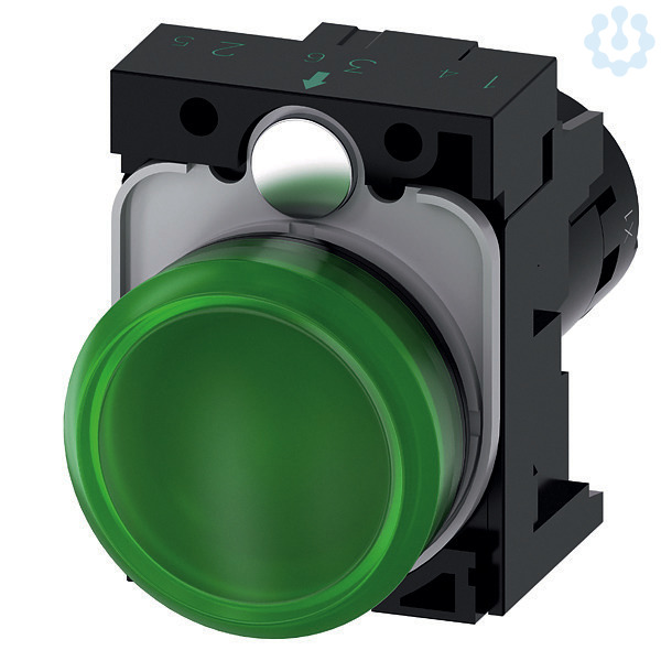 Leuchtmelder, kompakt, 22 mm, rund, Kunststoff, grün, Linse, glatt, mit Halter, Betriebsspannung AC/DC 24V, Schraubanschluss Leuchtmelder SIRIUS ACT zur Signalisierung von Schaltzuständen oder Störungen in Anlagen mit brillianter Leuchtkraft dank energieeffizienter LED-Technologie.Unter dem Markennamen SIRIUS ACT bietet Siemens ein einzigartiges Portfolio an Befehls- und Meldegeräten mit weltweiten Produkt-Zulassungen in vier modernen Designreihen aus robustem Echtmetall und hochwertigem Kunststoff.Das innovative Aufschnappkonzept vereinfacht die Montage so weit, dass dafür nur eine Hand und kein Spezialwerkzeug erforderlich ist. Als Montagebohrungen genügen nutfreie Löcher, da bereits ein 100%iger Verdrehschutz integriert ist.Dank der durchgängig hohen Schutzart sind die robusten Geräte industrietauglich und für den Außeneinsatz geeignet. Sogar die Reinigung mit Hochdruckstrahl ist möglich. Weder Staub, Öle noch aggressive Laugen können den zuverlässigen Betrieb stören.Neben der Standardverdrahtung können die Geräte auch über PROFINET, AS-Interface oder IO-Link an die Steuerung angebunden werden. Damit reduzieren Sie Ihren Verdrahtungsaufwand, minimieren Fehlerquellen und gewinnen mehr Flexibilität.Komfortabel unterstützt der grafische Online-Konfigurator bei Auswahl und Bestellung von Einzelgeräten, Gehäusen und Beschriftungen. Umfangreiche Dokumentation (z.B. Handbuch, 3D-Daten, Anschlussdiagramm) ist verfügbar.Lieferbare Ausführungen: mehrere Farben, verschiedene Spannungsvarianten.Hinweis: Kompaktgerät mit integrierter Beleuchtung. Lieferung inklusive Halter.SIRIUS ACT - Performance in Action beim Befehlen und Melden. Einfach montiert, einfach stark, einfach perfekt.
