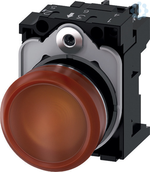 Leuchtmelder, 22 mm, rund, Metall, hochglanz, amber, Linse, glatt, mit Halter, LED-Modul mit integrierter LED AC 110 V, Schraubanschluss Leuchtmelder SIRIUS ACT zur Signalisierung von Schaltzuständen oder Störungen in Anlagen mit brillianter Leuchtkraft dank energieeffizienter LED-Technologie.Unter dem Markennamen SIRIUS ACT bietet Siemens ein einzigartiges Portfolio an Befehls- und Meldegeräten mit weltweiten Produkt-Zulassungen in drei modernen Designreihen aus robustem Echtmetall und hochwertigem Kunststoff.Das innovative Aufschnappkonzept vereinfacht die Montage so weit, dass dafür nur eine Hand und kein Spezialwerkzeug erforderlichist. Als Montagebohrungen genügen nutfreie Löcher, da bereits ein 100%iger Verdrehschutz integriert ist.Dank der durchgängig hohen Schutzart sind die robusten Geräte industrietauglich und für den Außeneinsatz geeignet. Sogar die Reinigung mit Hochdruckstrahl ist möglich. Weder Staub, Öle noch aggressive Laugen können den zuverlässigen Betrieb stören.Neben der Standardverdrahtung können die meisten Geräte auch über PROFINET, AS-Interface oder IO-Link an die Steuerung angebunden werden. Damit reduzieren Sie Ihren Verdrahtungsaufwand, minimieren Fehlerquellen und gewinnen mehr Flexibilität.Komfortabel unterstützt der grafische Online-Konfigurator bei Auswahl und Bestellung von Einzelgeräten, Gehäusen und Beschriftungen. Umfangreiche Dokumentation (z.B. Handbuch, 3D-Daten, Anschlussdiagramm) ist verfügbar.Lieferbare Ausführungen: mehrere Farben, verschiedene Spannungsvarianten.Hinweis: Komplettgerät, Lieferung inklusive Halter und Module.SIRIUS ACT - Performance in Action beim Befehlen und Melden. Einfach montiert, einfach stark, einfach perfekt.