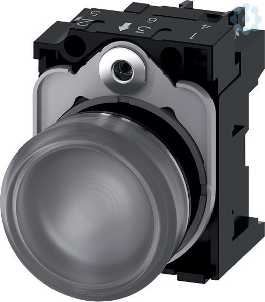 Leuchtmelder, 22 mm, rund, Metall, hochglanz, klar, Linse, glatt, mit Halter, LED-Modul mit integrierter LED AC 110 V, Schraubanschluss Leuchtmelder SIRIUS ACT zur Signalisierung von Schaltzuständen oder Störungen in Anlagen mit brillianter Leuchtkraft dank energieeffizienter LED-Technologie.Unter dem Markennamen SIRIUS ACT bietet Siemens ein einzigartiges Portfolio an Befehls- und Meldegeräten mit weltweiten Produkt-Zulassungen in drei modernen Designreihen aus robustem Echtmetall und hochwertigem Kunststoff.Das innovative Aufschnappkonzept vereinfacht die Montage so weit, dass dafür nur eine Hand und kein Spezialwerkzeug erforderlichist. Als Montagebohrungen genügen nutfreie Löcher, da bereits ein 100%iger Verdrehschutz integriert ist.Dank der durchgängig hohen Schutzart sind die robusten Geräte industrietauglich und für den Außeneinsatz geeignet. Sogar die Reinigung mit Hochdruckstrahl ist möglich. Weder Staub, Öle noch aggressive Laugen können den zuverlässigen Betrieb stören.Neben der Standardverdrahtung können die meisten Geräte auch über PROFINET, AS-Interface oder IO-Link an die Steuerung angebunden werden. Damit reduzieren Sie Ihren Verdrahtungsaufwand, minimieren Fehlerquellen und gewinnen mehr Flexibilität.Komfortabel unterstützt der grafische Online-Konfigurator bei Auswahl und Bestellung von Einzelgeräten, Gehäusen und Beschriftungen. Umfangreiche Dokumentation (z.B. Handbuch, 3D-Daten, Anschlussdiagramm) ist verfügbar.Lieferbare Ausführungen: mehrere Farben, verschiedene Spannungsvarianten.Hinweis: Komplettgerät, Lieferung inklusive Halter und Module.SIRIUS ACT - Performance in Action beim Befehlen und Melden. Einfach montiert, einfach stark, einfach perfekt.