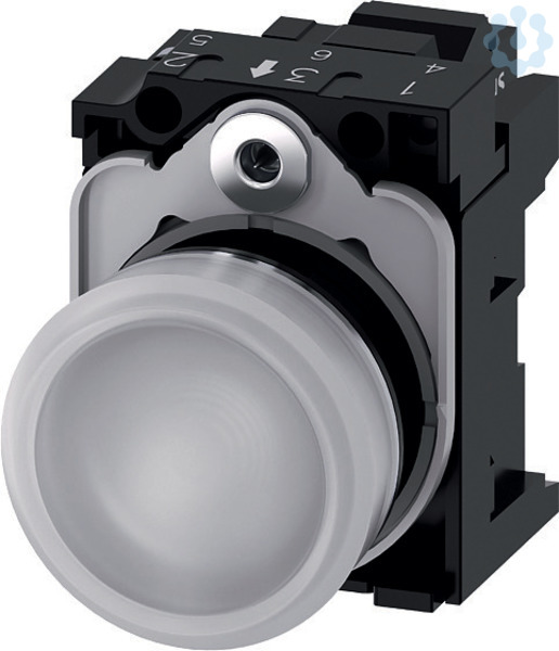 Leuchtmelder, 22 mm, rund, Metall, hochglanz, weiß, Linse, glatt, mit Halter, LED-Modul mit integrierter LED AC 110 V, Federzuganschluss Leuchtmelder SIRIUS ACT zur Signalisierung von Schaltzuständen oder Störungen in Anlagen mit brillianter Leuchtkraft dank energieeffizienter LED-Technologie.Unter dem Markennamen SIRIUS ACT bietet Siemens ein einzigartiges Portfolio an Befehls- und Meldegeräten mit weltweiten Produkt-Zulassungen in drei modernen Designreihen aus robustem Echtmetall und hochwertigem Kunststoff.Das innovative Aufschnappkonzept vereinfacht die Montage so weit, dass dafür nur eine Hand und kein Spezialwerkzeug erforderlichist. Als Montagebohrungen genügen nutfreie Löcher, da bereits ein 100%iger Verdrehschutz integriert ist.Dank der durchgängig hohen Schutzart sind die robusten Geräte industrietauglich und für den Außeneinsatz geeignet. Sogar die Reinigung mit Hochdruckstrahl ist möglich. Weder Staub, Öle noch aggressive Laugen können den zuverlässigen Betrieb stören.Neben der Standardverdrahtung können die meisten Geräte auch über PROFINET, AS-Interface oder IO-Link an die Steuerung angebunden werden. Damit reduzieren Sie Ihren Verdrahtungsaufwand, minimieren Fehlerquellen und gewinnen mehr Flexibilität.Komfortabel unterstützt der grafische Online-Konfigurator bei Auswahl und Bestellung von Einzelgeräten, Gehäusen und Beschriftungen. Umfangreiche Dokumentation (z.B. Handbuch, 3D-Daten, Anschlussdiagramm) ist verfügbar.Lieferbare Ausführungen: mehrere Farben, verschiedene Spannungsvarianten.Hinweis: Komplettgerät, Lieferung inklusive Halter und Module.SIRIUS ACT - Performance in Action beim Befehlen und Melden. Einfach montiert, einfach stark, einfach perfekt.