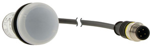 Leuchtmelder, Sortiment: RMQ compact solution, Komplettgerät, Bauform: flach, Anschlussart: Kabel (schwarz) mit M12A-Stecker, 4-polig, Kabellänge: 1 m, Farbe Linse: weiß, Farbe LED: weiß, Bemessungsbetriebsspannung LED: 24 V AC/DC, Schutzart: IP66, IP67, IP69K (frontseitig), IP65 (rückseitig), Anbindung an SmartWire-DT: nein, Normen und Bestimmungen: IEC/EN 60947-5-1, VDE 0660