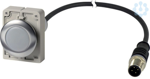 Leuchtmelder, Sortiment: RMQ compact solution, Komplettgerät, Bauform: flach, Anschlussart: Kabel (schwarz) mit M12A-Stecker, 4-polig, Kabellänge: 1 m, Farbe Linse: weiß, Farbe LED: weiß, Bemessungsbetriebsspannung LED: 24 V AC/DC, Schutzart: IP66, IP67, IP69K (frontseitig), IP65 (rückseitig), Anbindung an SmartWire-DT: nein, Normen und Bestimmungen: IEC/EN 60947-5-1, VDE 0660