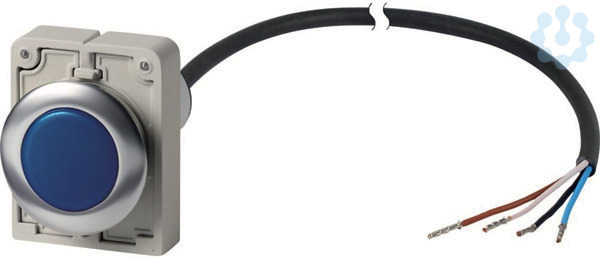 Leuchtmelder, Sortiment: RMQ compact solution, Komplettgerät, Bauform: flach, Anschlussart: Kabel (schwarz) mit offenem Ende, 4-polig, Kabellänge: 3.5 m, Farbe Linse: blau, Farbe LED: blau, Bemessungsbetriebsspannung LED: 24 V AC/DC, Schutzart: IP66, IP67, IP69K (frontseitig), IP65 (rückseitig), Anbindung an SmartWire-DT: nein, Normen und Bestimmungen: IEC/EN 60947-5-1, VDE 0660