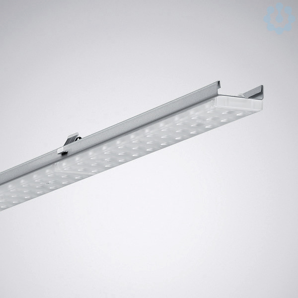 LED-Geräteträger für E-Line Lichtbandsystem. Erfüllt DIN 10500. Die Leuchten sind für die Anwendungen in HACCP, IFS Version 6 und/oder BRC Global Standard Food Version 7 zertifizierten Unternehmen der Lebensmittel- und Getränkeindustrie geeignet. Geräteträger in Kombination mit Zubehör 07650...IP54 für Anwendungen mit Anforderung an die Schutzart IP54 bei IK06 geeignet. Geeignet zur Anwendung in HACCP, IFS Version 6 und/oder BRC Global Standard Food Version 7 zertifizierten Unternehmen (DIN 10500). Für TRILUX E-Line T5N/LED oder T8 Universal Tragprofile, T5-Anwendungen ...35-...(1475 mm), T8-Anwendungen ...58-...(1530 mm) mit Blindabdeckung L55. Blindabdeckung zum Längenausgleich bei T8-Nachrüstungsanwendungen als separat zu bestellendes Zubehör verfügbar. Befestigung am Tragprofil durch werkzeuglos zu betätigende Edelstahl-Rastverschlüsse. Die Ausführung der vier Rastverschlüsse ermöglicht eine visuelle Kontrolle der sicheren Einrastung des Geräteträgers in das Tragprofil. Die PMMA-Linsenoptik bildet eine fest verbundene Einheit mit jeweils einem LED-Segment. Mit asymmetrischer Lichtstärkeverteilung. Oberfläche der Linsenoptik zur gleichmäßigen Lichtverteilung und homogenen Ausleuchtung der Lichtaustrittsöffnung plan ausgeführt. Die plane Oberfläche erleichtert Reinigungsvorgänge an der Leuchte. Blendungsbewertung nach UGR-Einstufung (EN 12464-1) < 22. Bemessungslichtstrom 4300 lm, Bemessungsleistung 26,00 W, Leistungsfaktor λ > 0,95, Leuchten-Lichtausbeute 165 lm/W. Lichtfarbe tageslichtweiß, ähnlichste Farbtemperatur (CCT) 6500 K, Farborttoleranz (initial MacAdam) ≤ 3 SDCM, allgemeiner Farbwiedergabeindex (CRI) Ra > 80. Mittlere Bemessungslebensdauer L80(tq 50 °C) = 70.000 h, mittlere Bemessungslebensdauer L85(tq 50 °C) = 50.000 h. Geräteträger aus Stahlblech. Oberfläche silbergrau beschichtet (RAL 9006). Maße (L x B): 1475 mm x 63 mm. Gewicht: 1,9 kg. 75 mm maximale Breite durch Verschlusstechnik. Zulässige Umgebungstemperatur (ta): -25 °C - +50 °C. Schutzklasse (EN 61140): I, Schutzart (DIN EN 60529): IP20, Stoßfestigkeitsgrad nach IEC 62262: IK03, Prüftemperatur Glühdrahttest gemäß IEC 60695-2-11: 650 °C. Selbsttätige elektrische Verbindung durch Steckkontakte mit Phasenwahl. Die Phasenwahl erfolgt werkzeuglos. Mit elektronischem Betriebsgerät, schaltbar. Das Produkt erfüllt die grundlegenden Anforderungen der anwendbaren EU-Richtlinien und des Produktsicherheitsgesetzes und trägt die CE-Kennzeichnung.