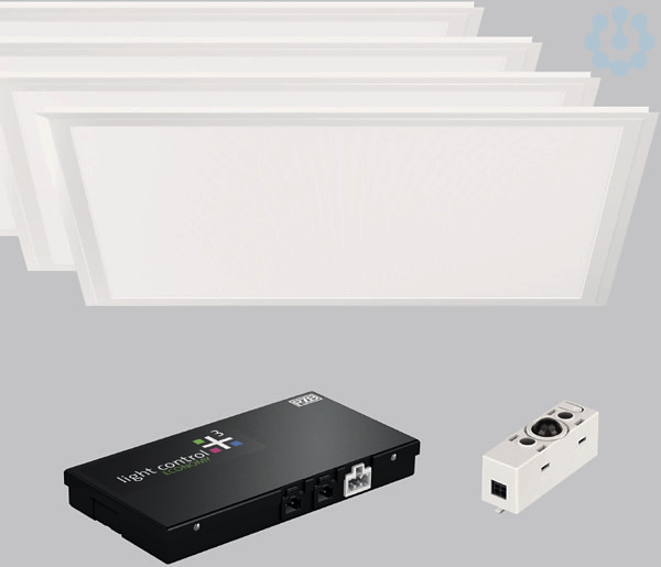 Das HCL (Human Centric Lighting) Komplettpaket bestehend aus 4Einlegeleuchten mit Tunable White (TW) Funktion von 2700-6500 K undvoreingestellter Steuerung, simuliert den natürlichen Tageslichtverlaufder Sonne und sorgt so für mehr Aktivität und Wohlbefinden inInnenräumen.