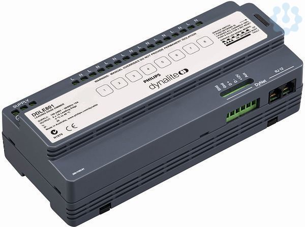 Phasenanschnitts-Dimmer eignen sich ideal für Stromkreise mit ohmschen und induktiven Eigenschaften wie direkt per Netzspannung betriebene Glüh-, Neon- oder Niedervoltlampen mit entsprechendem elektronischen Transformator. Dynalite Produkte sind je nach den Projektanforderungen für die Montage auf DIN-Hutschiene und in Unterverteilungen sowie in zahlreichen Schaltkreisen und Größen erhältlich und können einzeln oder als Bestandteil eines Systems verwendet werden. In Unterverteilungen untergebrachte Dimmer erreichen Anstiegszeiten von über 100 μs, wodurch die Geräuschentwicklung des Leuchtmittels und der Versorgungsspannung deutlich zurückgeht und die Lampen entsprechend länger halten. Die Dimmer sind mit elektronischen Transformatoren kompatibel, so dass ihre Leistung seltener reduziert werden muss und alle Kanäle vollständig genutzt werden können.
