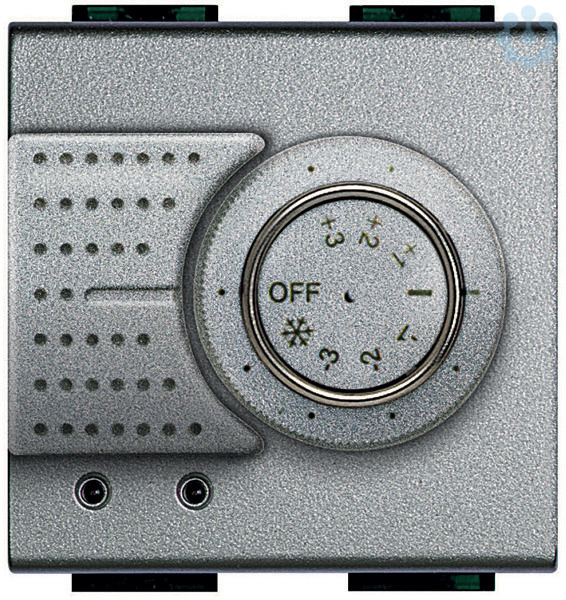 Raumthermostat mit Stellrad zum manuellen Verändern der Solltemperatur um ±3 °C, Frostschutz und Aus, Messbereich 3–40 °C, Kontroll-LEDs für Betrieb und Heizen/Kühlen, Farbe: Tech