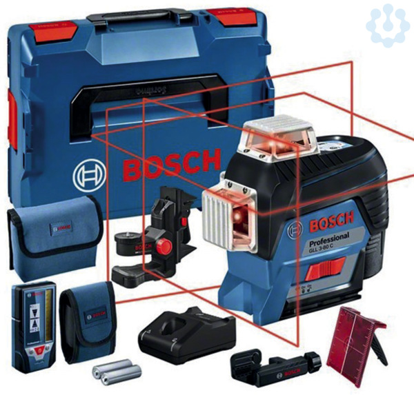 Linienlaser GLL 3-80 C. Der Linienlaser GLL 3-80 C Professional wird einfach angeschlossen und sorgt über die Projektion von 3 x 360°-Linien für exzellente Sichtbarkeit. Dank innovativer CAL Guard-Überwachung und Bluetooth®-Verbindung zur Smartphone-App sind der ferngesteuerte Einsatz, die kontaktlose Justierung sowie hohe Präzision möglich. Leistungsstarke Dioden garantieren starke Sichtbarkeit, während dank 3 x 360°-Linien für die gleichzeitige Durchführung von horizontalen und vertikalen Nivellierarbeiten und somit für hohe Arbeitseffizienz gesorgt wird. Dieser Linienlaser wurde für den Bau von Böden, die Montage von Fenstern, das Anbringen von Regalen, das Verlegen von Abflussrohren, den Rohbau für Trockenbauwände und das Verlegen von Fliesen entwickelt. Dank Dual Power Source-Technologie des GLL 3-80 C Professional ist ein Betrieb sowohl mit 12-V-Li-Ion-Akku als auch mit Standard-Alkalinebatterien möglich, ein Plus an Flexibilität. Das Gerät ist in der Lage, sich auf nicht planaren Oberflächen in weniger als 4 Sekunden mit einer exzellenten Genauigkeit von ± 0,2 mm/m*/** um bis zu +/- 4° selbst zu nivellieren und verfügt bei Verwendung des optionalen Empfängers LR 6 oder LR 7 Professional über eine Reichweite von bis zu 120 m. Dieser Linienlaser ist kompakt, einfach zu bedienen und extrem robust. Im Lieferumfang enthalten: L-BOXX 136 (1 600 A01 2G0), Universalhalterung BM 1 Professional (0 601 015 A01), Laserzieltafel, Tasche, 1x Akku GBA 12V 2.0Ah (1 600 Z00 02X), Halterung für Laserempfänger LR 6/7 (1 608 M00 C1L), Laser-Empfänger LR 7 Professional (0 601 069 J00), Schnellladegerät GAL 12V-40 Professional (1 600 A01 9R3)