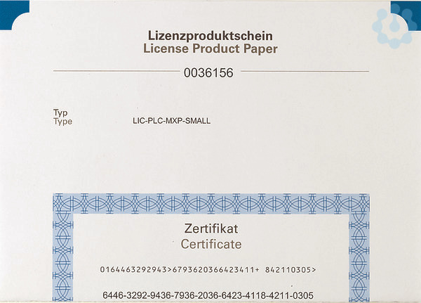 Lizenz, XV-Lizenzproduktscheine, Lizenzproduktschein zur PLC-Nachrüstung mit Lizenzaufkleber SMALL