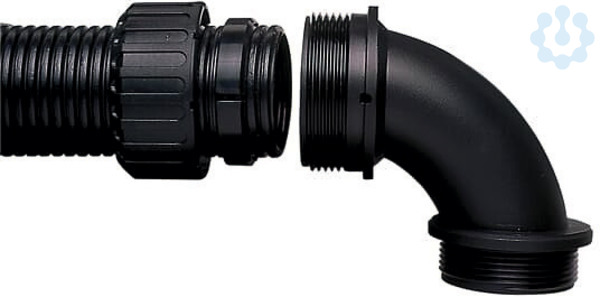 AR34/M32/C90/BL Typ C90, Nennmaß: 34, 90°-Bogen Verschr. in schwarz, feststehendes Außengewinde