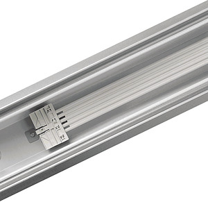 Die Tragschiene hat zwei Aufgaben: sie dient sowohl als stabile Montageschiene für die Lichtträger als auch als Gehäuse für die Stromversorgungskabel der einzelnen Einheiten. Alle Schienenabschnitte bestehen aus weiß oder silber lackiertem feuerverzinktem Stahl. Sie sind in speziellen TL5 Längen von 1, 2 und 3 Lichtträgern für 49 W (35 W, 80 W) und 54 W (28 W) lieferbar. Der Maxos LED Lichtträger 4MX850 491 wird ebenfalls mit diesen Tragschienen angewendet. In die Schiene sind ein (5- oder 7-adriges) oder zwei (2 x 5-adrige oder 2 x 7-adrige) Flachbandkabel integriert, so dass jederzeit in Verbindung mit einem integrierten Phasenwahlschalter und Anschlussblöcken eine sichere und korrekte Verkabelung möglich ist. Das 7-adrige Kabel dient zum Anschluss einer Lichtregelung oder Notbeleuchtung an die mit einem Notlicht-Akkupaket ausgestatteten Lichtträger. Doppelkabel (2 x 5- oder 2 x 7-adrig) werden benötigt, wenn die Lichtträger mit einer kompletten separaten Stromversorgung verbunden werden sollen. Sie kommen vor allem für Notbeleuchtungen über zentrale Notfallakkus oder separate Schaltvorgänge zum Einsatz. In diesen Fällen sind dann keine zusätzlichen Anschlussblöcke oder Kabel erforderlich. Bei hängenden Lichtbändern werden die Tragschienenabschnitte über den integrierten elektrischen Anschluss und ein robustes externes mechanisches Kupplungsstück (Zubehör) miteinander verbunden. An der Decke montierte Lichtbänder nutzen den gleichen integrierten elektrischen Anschluss und eine interne Kupplung (Zubehör). Die Kabel lassen sich je nach Bedarf durch spezielle Ausbrechöffnungen im oberen Bereich des Schienenabschnitts führen. Die Tragschiene wird mit einer kompletten Reihe an austauschbaren Komponenten geliefert, so dass sie sich sehr flexibel anbringen lässt. Die ausgezeichnete Stabilität der Abschnitte und Kupplungen erlaubt Befestigungsabstände von 3,4 bis 5 Metern. Das Grundzubehör für Maxos TL-D / LED Tragschienen kann auch für TL5 / LED Tragschienen verwendet werden.