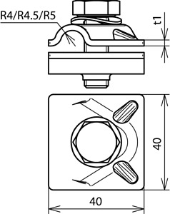 MehrzweckVerbindungs-Klemme nach DIN EN 62561-1, zur universellen Verwendung als Kreuz-, T- und Parallelklemme von Rundleitern. Ausführung zweiteilig mit Sechskantschraube, Federscheibe und Gewinde im Unterteil.