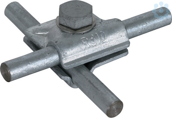 MehrzweckVerbindungs-Klemme nach DIN EN 62561-1, zur universellen Verwendung als Kreuz-, T- und Parallelklemme von Rundleitern. Ausführung zweiteilig mit Sechskantschraube, Federscheibe und Gewinde im Unterteil.