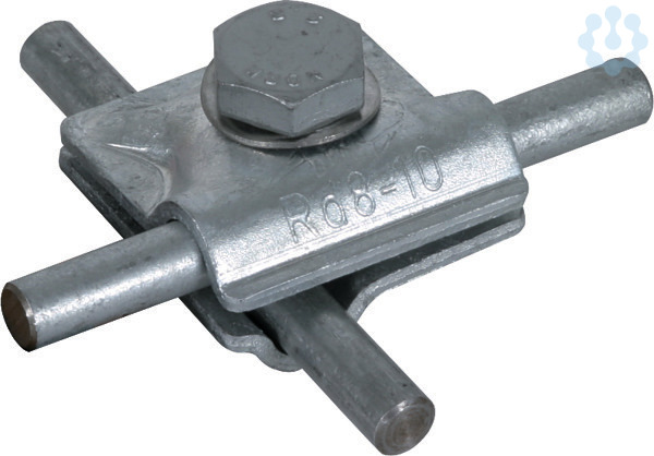 MehrzweckVerbindungs-Klemme nach DIN EN 62561-1, zur universellen Verwendung als Kreuz-, T- und Parallelklemme von Rundleitern. Ausführung zweiteilig mit Sechskantschraube, Federscheibe und Gewinde im Unterteil.