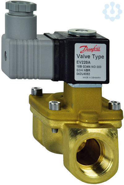 Magnetventil für Wasser stromlos geöffnet, mit 3/4 Anschluss Betriebswerte -10°C bis 90°C 0,2 bis 16 bar, 7qm/h 230V AC, 7,5W, IP65.