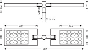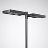 LED-Mastaufsatzleuchte in Zweifachanordnung. Leistungsreduzierung auf 50 % des Leuchtenlichtstroms bei Abschaltung einer Steuerphase. Für Mastaufsatzmontage. Für Mastzopf Ø 76 mm. Optisches System aus satinierten Kunststoffreflektoren mit integrierten LED-Modulen. Mit asymmetrisch breit strahlender Lichtstärkeverteilung. LED-System bestehend aus 24 Hochleistungs-LED. Bemessungslichtstrom 10200 lm, Bemessungsleistung 100,00 W, Leuchten-Lichtausbeute 102 lm/W. Lichtfarbe neutralweiß, ähnlichste Farbtemperatur (CCT) 4000 K, allgemeiner Farbwiedergabeindex (CRI) Ra > 70. Farborttoleranz (initial MacAdam) ≤ 5 SDCM, Mittlere Bemessungslebensdauer LCLO(tq 25 °C) = 80.000 h. Leuchtenkörper aus Aluminium-Strangpressprofil und Aluminium-Druckgusskomponenten. Farbe des Leuchtengehäuses anthrazit, ähnlich DB 703, mit Metalleffekt, pulverbeschichtet, hochwetterfest. Seewetter geeignete Beschichtung auf Anfrage. Abdeckscheibe aus planem, wärmebehandeltem Einscheiben-Sicherheitsglas (ESG-H), teilsatiniert. Gewicht: 26,7 kg. Schutzklasse (EN 61140): II, Schutzart (DIN EN 60529): IP65, Schutzart Lampenraum: IP65, Stoßfestigkeitsgrad nach IEC 62262: IK04. Mit elektronischem Betriebsgerät, schaltbar. Elektrischer Anschluss an 3-poliger Anschlussklemme bis 2,5 mm2. Parametrierbares Vorschaltgerät mit Lichtstromkonstanthaltung (CLO). Anschlussleistung am Ende der Lebensdauer: 105,00 W. Das Produkt erfüllt die grundlegenden Anforderungen der anwendbaren EU-Richtlinien und des Produktsicherheitsgesetzes und trägt die CE-Kennzeichnung.