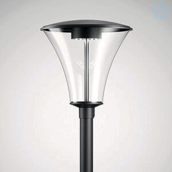 Dekorative Mastaufsatzleuchte in Kegelform. Mit intelligentem Label zum schnellen Aufrufen von Leuchten-Informationen mittels QR-Code. Mit Leistungsreduzierung über Steuerphase. Das Abschalten einer Steuerphase bewirkt eine Einstellung des Leuchtenlichtstroms auf 50 %. Passender Mast auf Anfrage. In MLT-Ausführung (Multi-Lens-Technologie), bestehend aus hocheffizienten, UV- und temperaturbeständigen Linsensystemen in Vierfachanordnung. Mit asymmetrisch breit strahlender Lichtstärkeverteilung. Zur Beleuchtung von Straßen nach P-Beleuchtungsklassen. Zur flexiblen Anpassung an kundenspezifische Beleuchtungsaufgaben stehen weitere Abstrahlcharakteristiken zur Verfügung. Der nachträgliche Einbau einer rückseitigen / seitlichen Abschirmung ist als separat zu bestellendes Zubehör möglich. Bemessungslichtstrom 2600 lm, Bemessungsleistung 22,00 W, maximale Leuchten-Lichtausbeute 118 lm/W. Lichtfarbe warmweiß, ähnlichste Farbtemperatur (CCT) 3000 K, allgemeiner Farbwiedergabeindex (CRI) Ra > 70. Farborttoleranz (initial MacAdam) ≤ 5 SDCM. Weitere LED-Lichtfarben auf Anfrage verfügbar. Mittlere Bemessungslebensdauer LCLO(tq 25 °C) = 100.000 h. Die Lichtquelle ist entsprechend der Ökodesign-Anforderungen (VO (EU) 2019/2020) austauschbar. Leuchtenkörper aus Aluminium-Druckguss. Leuchtendächer aus korrosionsbeständigem Aluminium. Farbe anthrazit, ähnlich DB703. Seewetter geeignete Beschichtung auf Anfrage. Abschlusswannen aus hochschlagzähem PMMA, klar. Schutzklasse (EN 61140): II, Schutzart (DIN EN 60529): IP65, Stoßfestigkeitsgrad nach IEC 62262: IK07. Mast auf Anfrage erhältlich. Windangriffsfläche fw 0,190 m2. Gewicht: 7,6 kg. Mit montierter Anschlussleitung 6 m. Mit elektronischem Betriebsgerät, schaltbar. Parametrierbares Betriebsgerät mit Lichtstromkonstanthaltung (CLO). Das Betriebsgerät ist entsprechend der Ökodesign-Anforderungen (VO (EU) 2019/2020) austauschbar. Stoßspannungsfestigkeit Differential Mode / Common Mode: 6 kV / 10 kV. Das Produkt erfüllt die grundlegenden Anforderungen der anwendbaren EU-Richtlinien und des Produktsicherheitsgesetzes und trägt die CE-Kennzeichnung. Zusätzlich ist die Leuchte durch eine unabhängige Prüfstelle ENEC-zertifiziert.