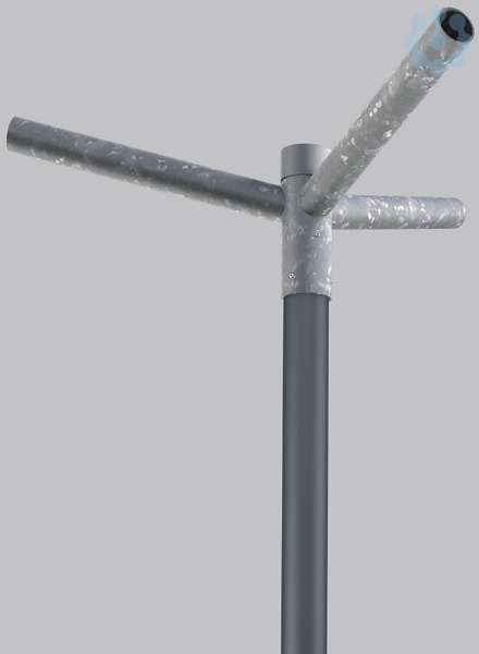 Mastausleger für 3 Leuchten, unlackiert. Mastausleger für Ansatzmontage, Stahl feuerverzinkt. Für Zopfdurchmesser ø 76 mm. Auslegerarm Länge 500 mm, ø 60 mm. Bitte Reduzierstück (982562.000) für die Montage der Leuchte am Ausleger separat bestellen!