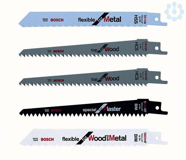 Systemzubehör Messer-Set. 5 Ersatzsägeblätter (2 x für Holz, 1 x für Metall, 1 x für Holz und Metall, 1 x für Putz). Im Lieferumfang enthalten: Kartonschachtel